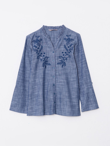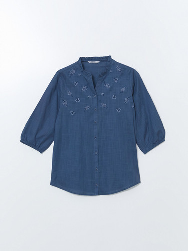 شومیز زنانه ال سی وایکیکی مدل گلدوزی سورمه ای