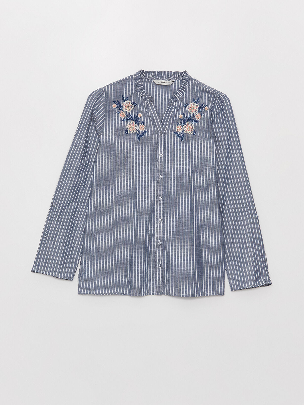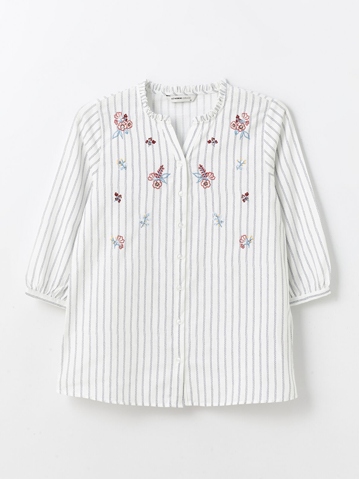 شومیز زنانه ال سی وایکیکی راه راه مدل گلدوزی