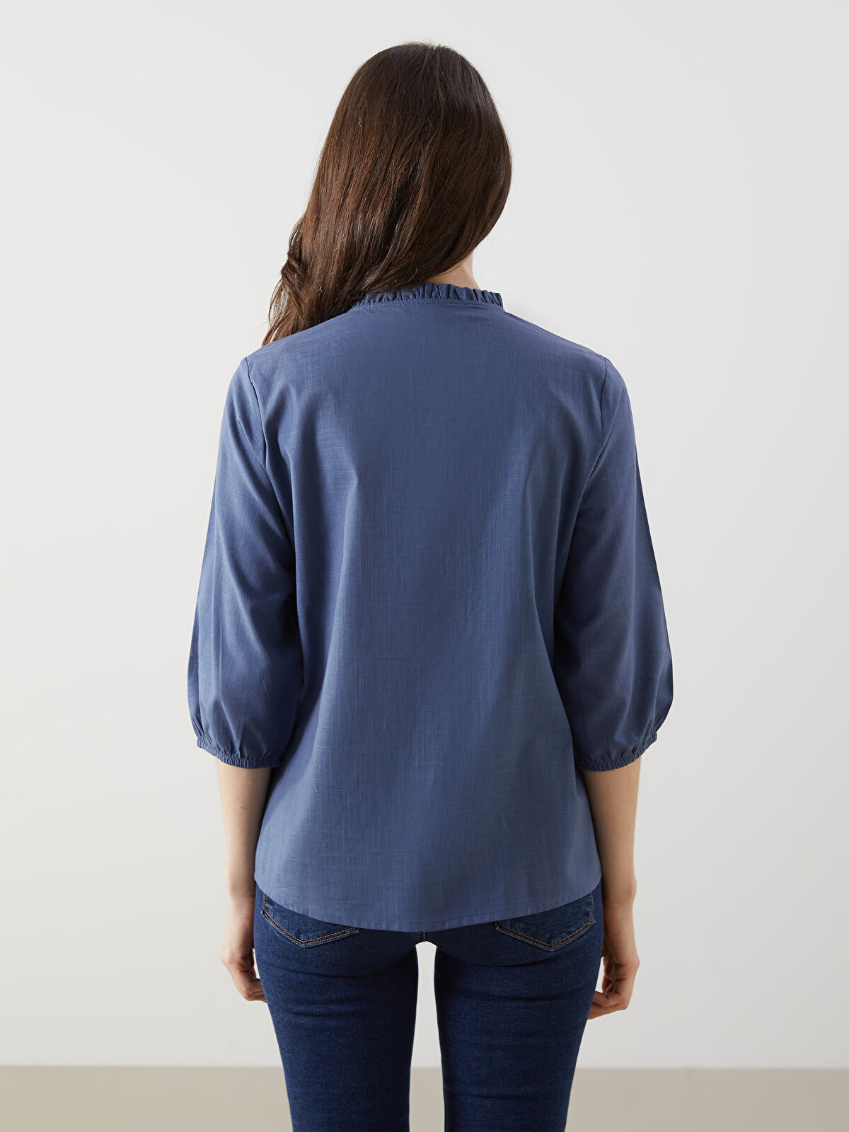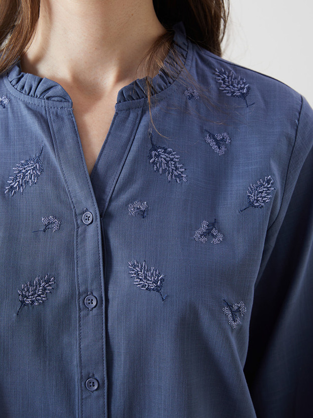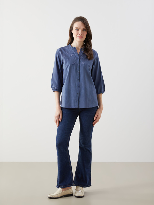 شومیز زنانه ال سی وایکیکی مدل گلدوزی سورمه ای